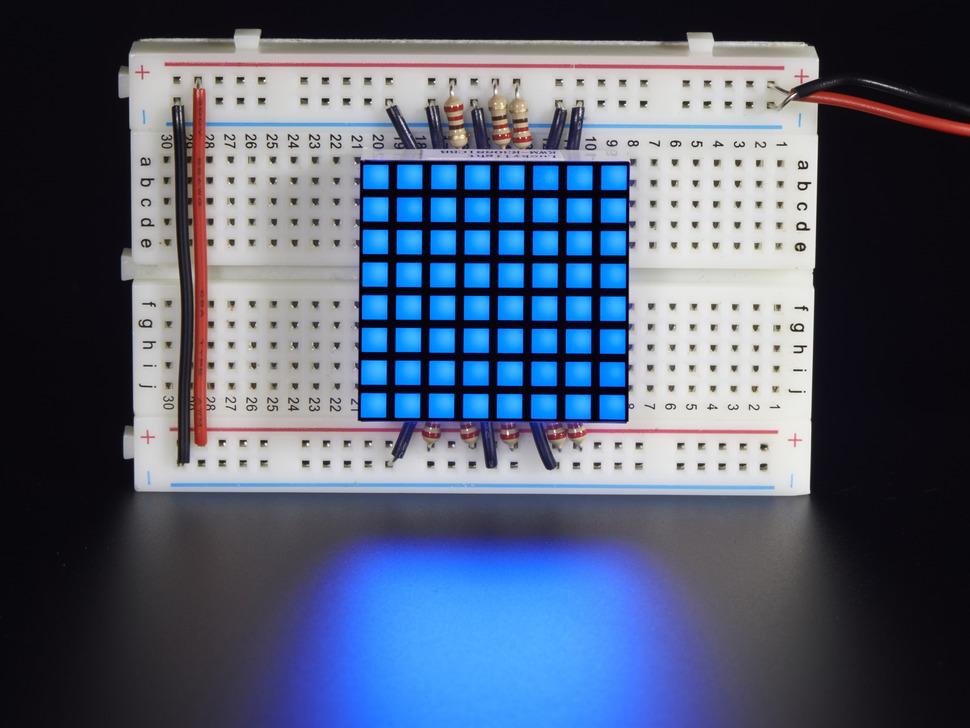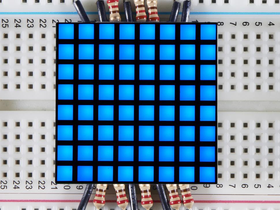Denne kompakte 8x8 blå LED-matrix tilbyder en alsidig løsning til at skabe rulleskilte eller små videodisplays. Trods sin beskedne størrelse på 1,2 tommer kan den prale af 64 livlige blå LED'er, der sikrer høj synlighed og passer perfekt ind i et breadboard-setup.
