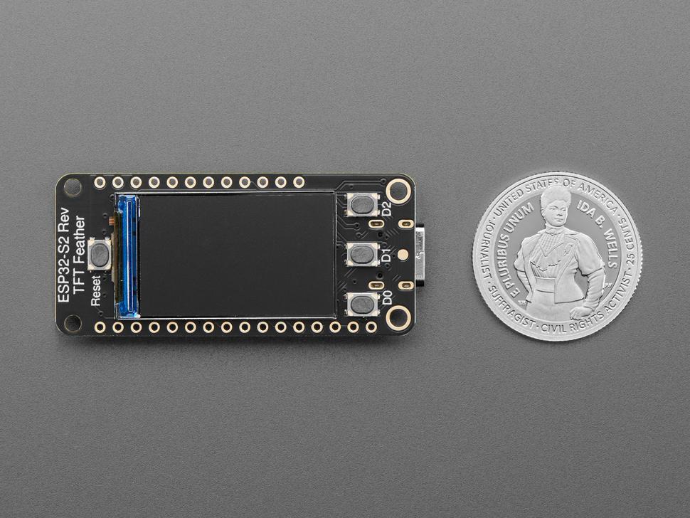 Bemærk venligst, at Feather ESP32-S2 har en single-core 240 MHz chip, så den ikke er lige så hurtig som ESP32'ere med dual-core. Der er heller ingen Bluetooth-understøttelse. Vi er dog super begejstrede for ESP32-S2's native USB , som åbner op for en masse muligheder for avanceret brugerflade!