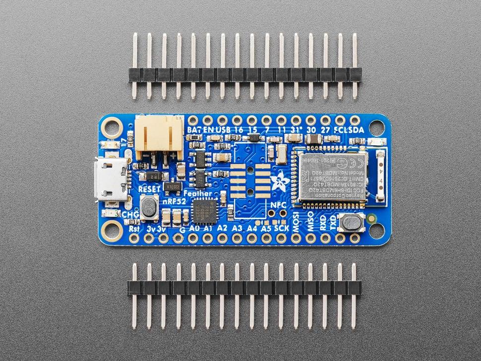 Feather nRF52 forenkler bærbare projekter med et batteristik og indbygget opladning. Den kommunikerer problemfrit med iOS- og Android-enheder direkte fra æsken og forvandler din telefon til en alsidig controller eller datamodtager. Modulet er i stand til at håndtere avancerede opgaver som at definere brugerdefinerede GATT-tjenester eller fungere som et HID-tastatur.