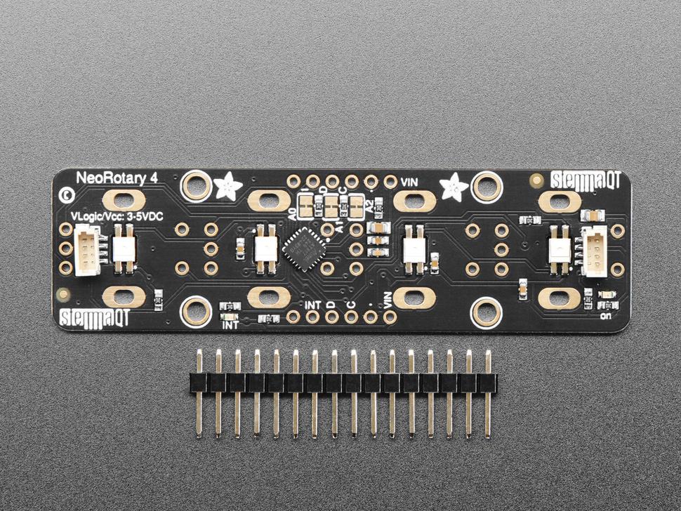 For problemfri integration forenkler dette Stemma QT breakout-board processen. Med kompatibilitet med op til fire roterende encodere er det perfekt til at skabe omfattende grænseflader fyldt med knapper.