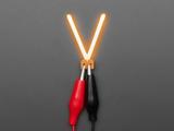 Selvom LED'erne er på den ene side, giver det tynde printkortsubstrat en diskret glød bagfra. Da de kun bruger 3V, kræver de en strømbegrænsende modstand, der kan håndtere maksimalt 100mA. Bemærk, at disse bogstaver ikke er fleksible, men giver en ensartet glød som en wolfram-lignende glødetråd.
