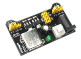 En meget praktisk strømforsyning til at forbinde til et brødbræt med dobbelte strømskinner (standardtavler). Dette modul er let at tænde og slukke med en trykknap og tilbyder unik fleksibilitet med jumpere på begge sider, der kan indstilles uafhængigt af hinanden. For eksempel kan du indstille en spænding på 3,3V til venstre, mens du indstiller 5V til højre.