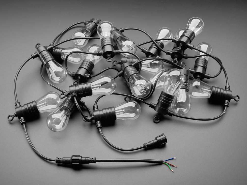 Til udsmykning af udendørsområder har TM1814-udstyrede café- eller terrassepæretråde hver 20 pærer med en tredobbelt RGBW LED indeni. Disse lys giver den klassiske charme ved cafélys, samtidig med at de giver fuld RGBW-kontrol og tilbyder enhver regnbue- eller varm hvid farve med individuelt adresserbare pærer.