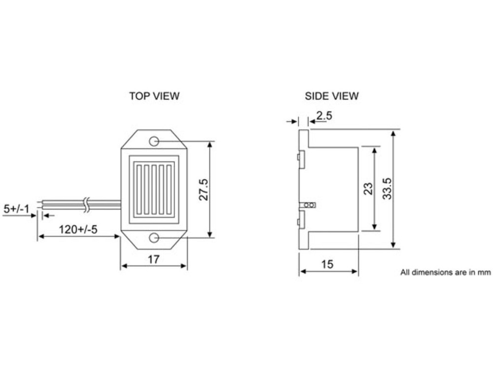 Det er helt nemt at montere det på en flange, og det fungerer inden for en spændingsinterval på 18-28Vdc, med en nominel spænding på 24Vdc og bruger kun 30mA strøm. Svingningsfrekvensen spænder fra 300-500Hz og giver en lydstyrke på 85 decibel.