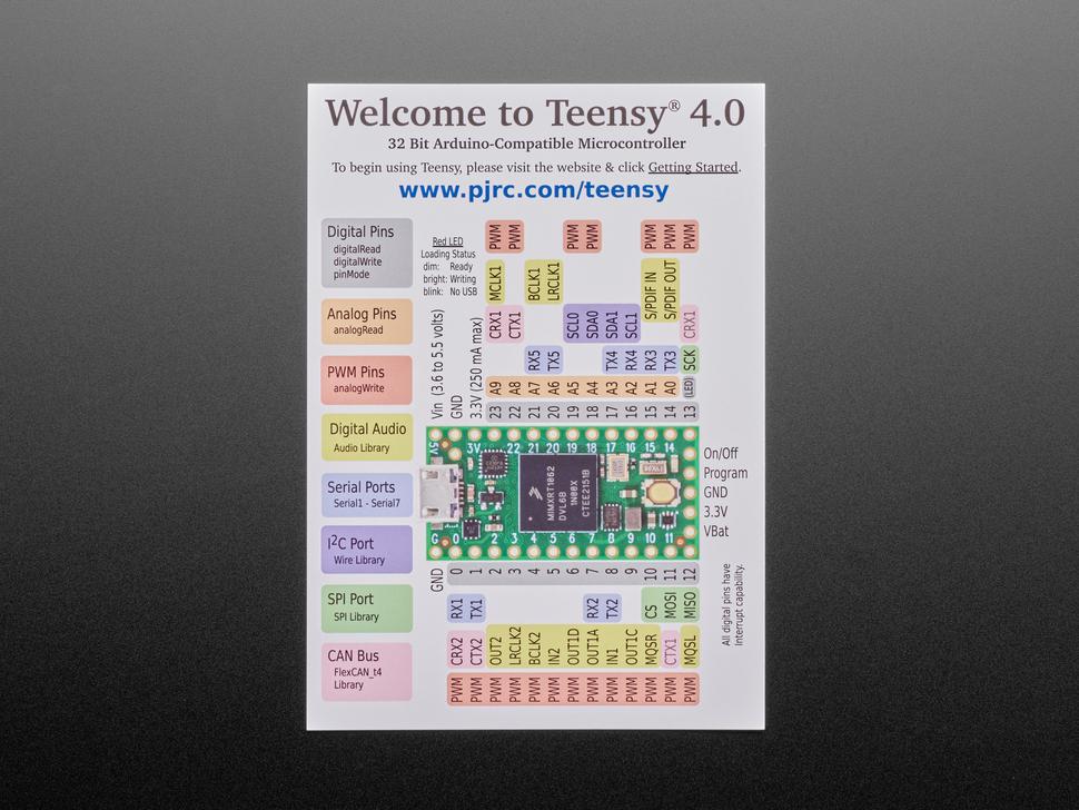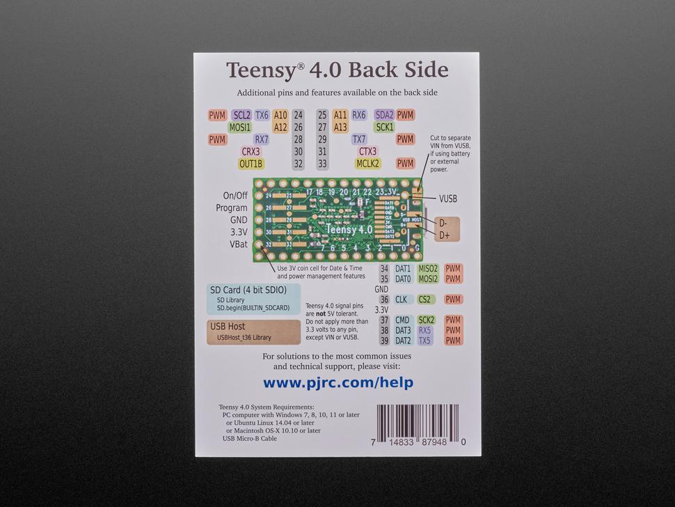 Teensy 4.0 har også en strømafbryderfunktion. Ved at tilslutte en trykknap til tænd/sluk-stikket kan 3,3V strømforsyningen deaktiveres helt ved at holde knappen nede i 5 sekunder og tændes igen med et kort tryk. Hvis et knapcellebatteri er tilsluttet VBAT, fortsætter Teensy 4.0's RTC også med at holde styr på dato og klokkeslæt, mens strømmen er slukket. Teensy 4.0 kan også overclockes, langt ud over 600 MHz!