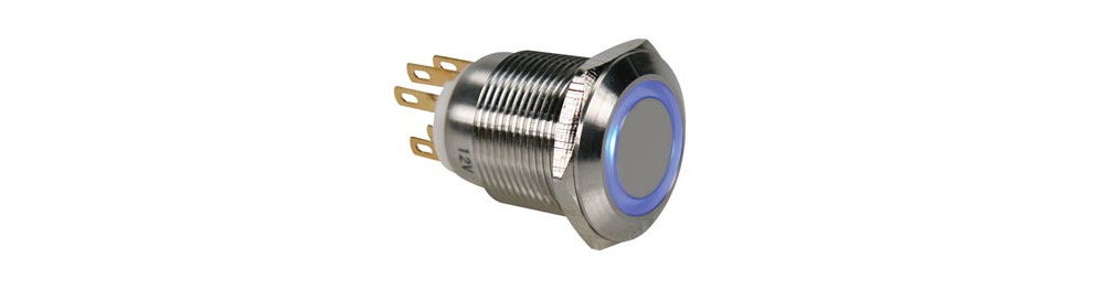 Denne SPDT trykknap i rustfrit stål med en blå ring tilbyder ikke bare en robust konstruktion, men også et fantastisk funktionelt design, der er perfekt til forskellige anvendelser.